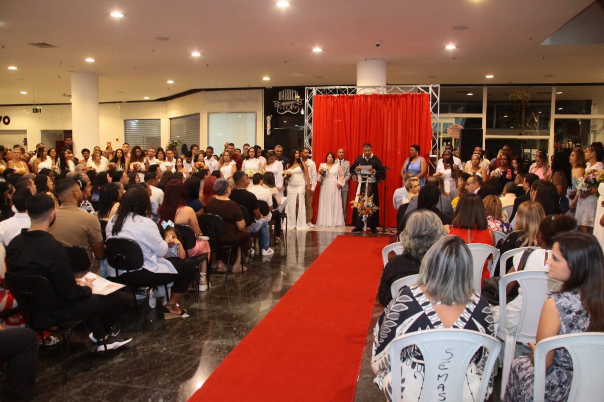 A Prefeitura de Nova Iguaçu, através da Secretaria Municipal de Assistência Social, realizou neste domingo (28) a terceira edição do Casamento Comunitário, oficializando gratuitamente a união civil de 52 pares. A celebração ocorreu no Top Shopping e foi conduzida pelo juiz de direito do Tribunal de Justiça do Estado do Rio de Janeiro, Dr. Octávio Chagas de Araujo Teixeira. O prefeito Dudu Reina e a vice-prefeita, Doutora Roberta, figuraram como padrinhos de honra do evento.